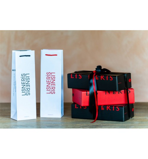 Per regalare i vini Lis Neris in un’elegante confezione è possibile aggiungere al vostro ordine il numero di borsine desiderato. Disponibili bianche con scritta rossa o nera.